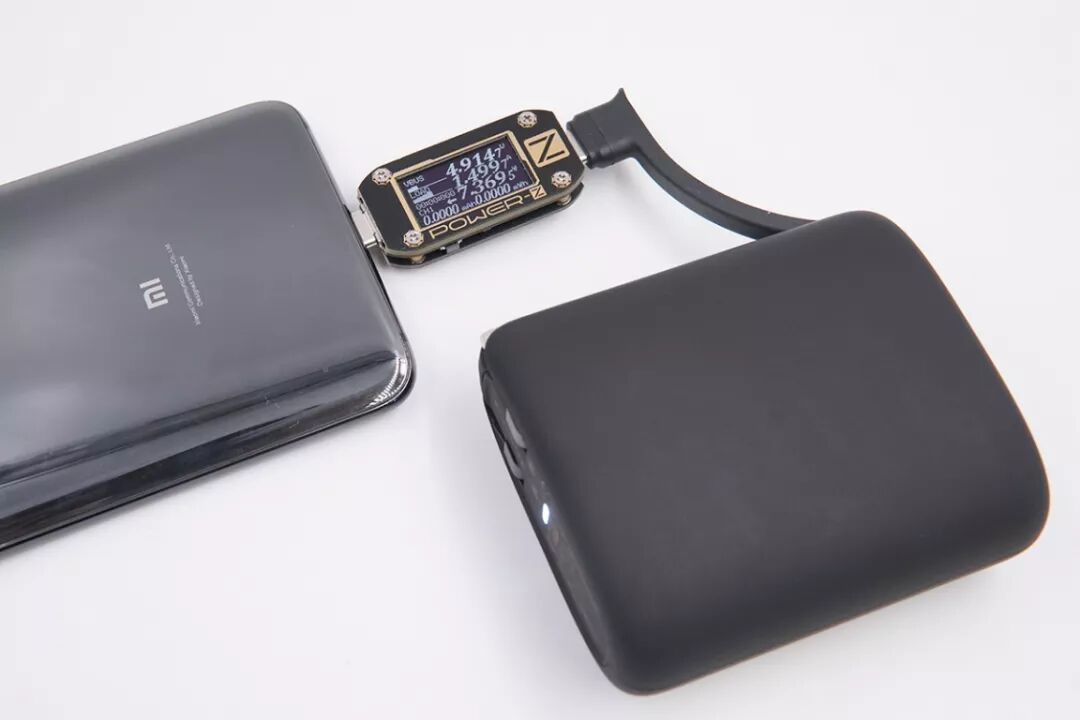 自带线USB-C口给小米9充电,电压4.91V,电流1.49A,功率7.36W,普通充电模式。