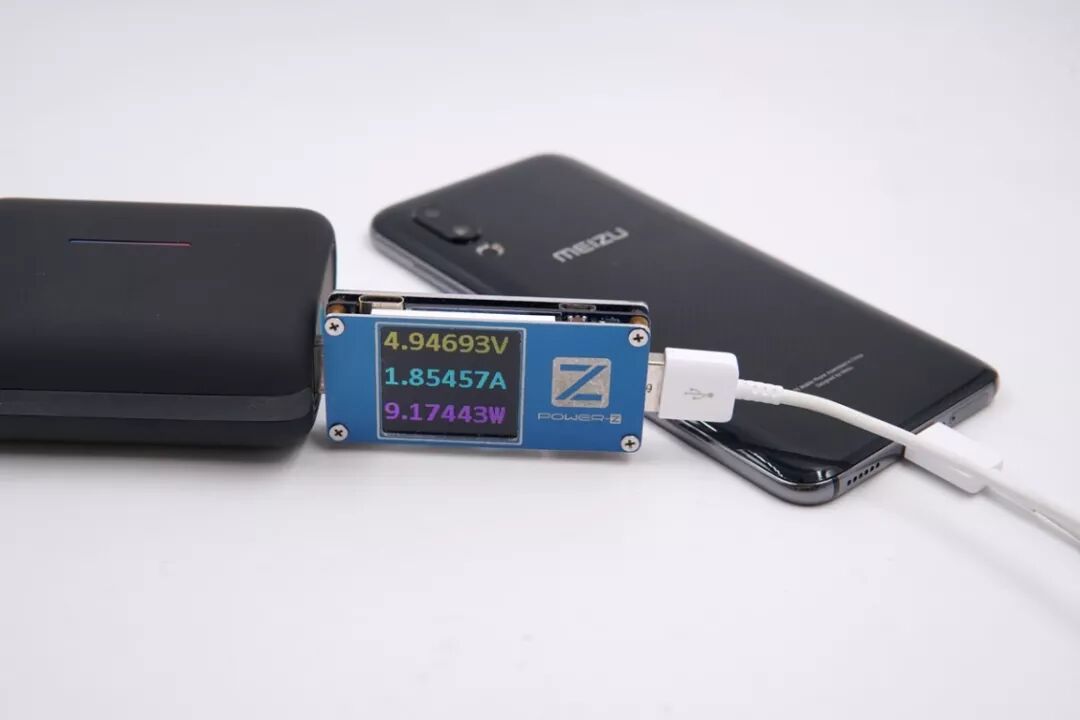 USB-A口给魅族16S充电,电压4.96V,电流1.85A,功率9.17W,普通充电模式。