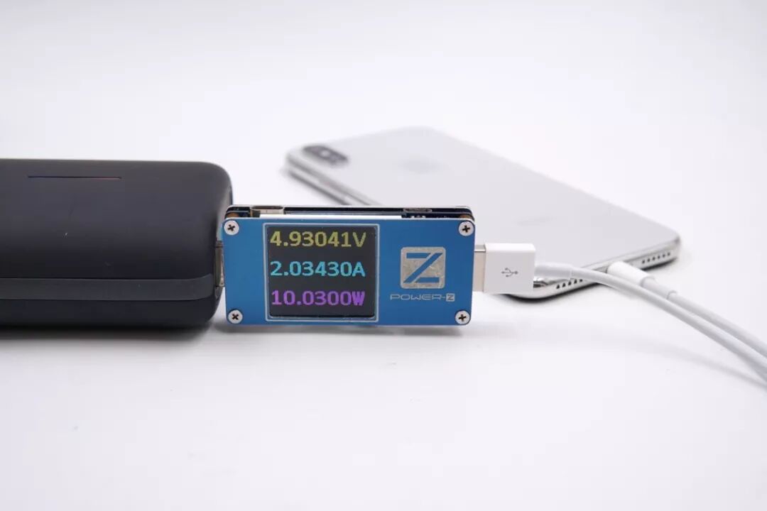 USB-A口给iPhone X充电,电压4.93V,电流2.03A,功率10.03W,开启Apple 2.4A协议充电模式。