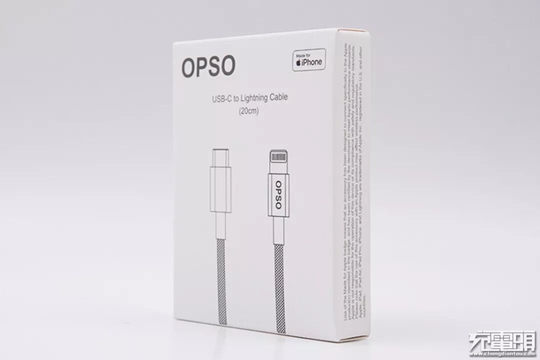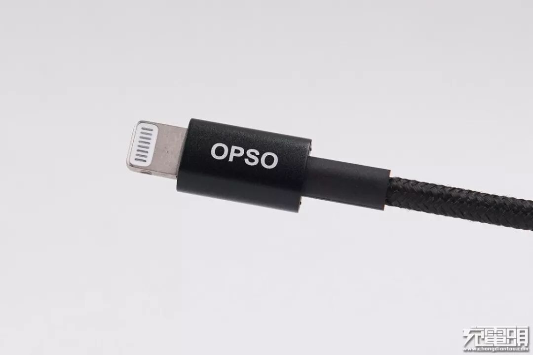 OPSO是业内著名的线材生产厂商,为很多家大品牌代工产品,当然他们自己也有OPSO品牌自产自销。OPSO USB-C to Lightning数据线包装简洁,黑白两色简简单单,纸制品的原生手感,非常环保。
