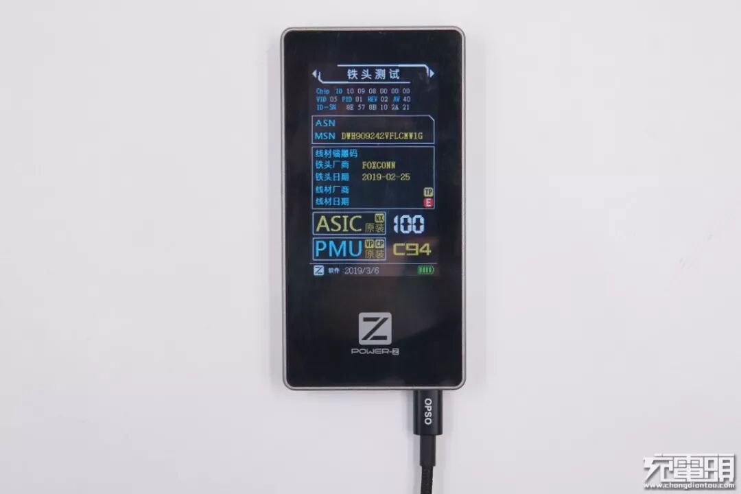 在使用ChargerLAB Power-Z MF001测试仪检测过后,OPSO USB-C to Lightning数据线采用ASIC、PMU均为原装的Lightning端子头,评分为100分,兼容性不用太过担心,这一点在后续的兼容性测试中也有所体现。