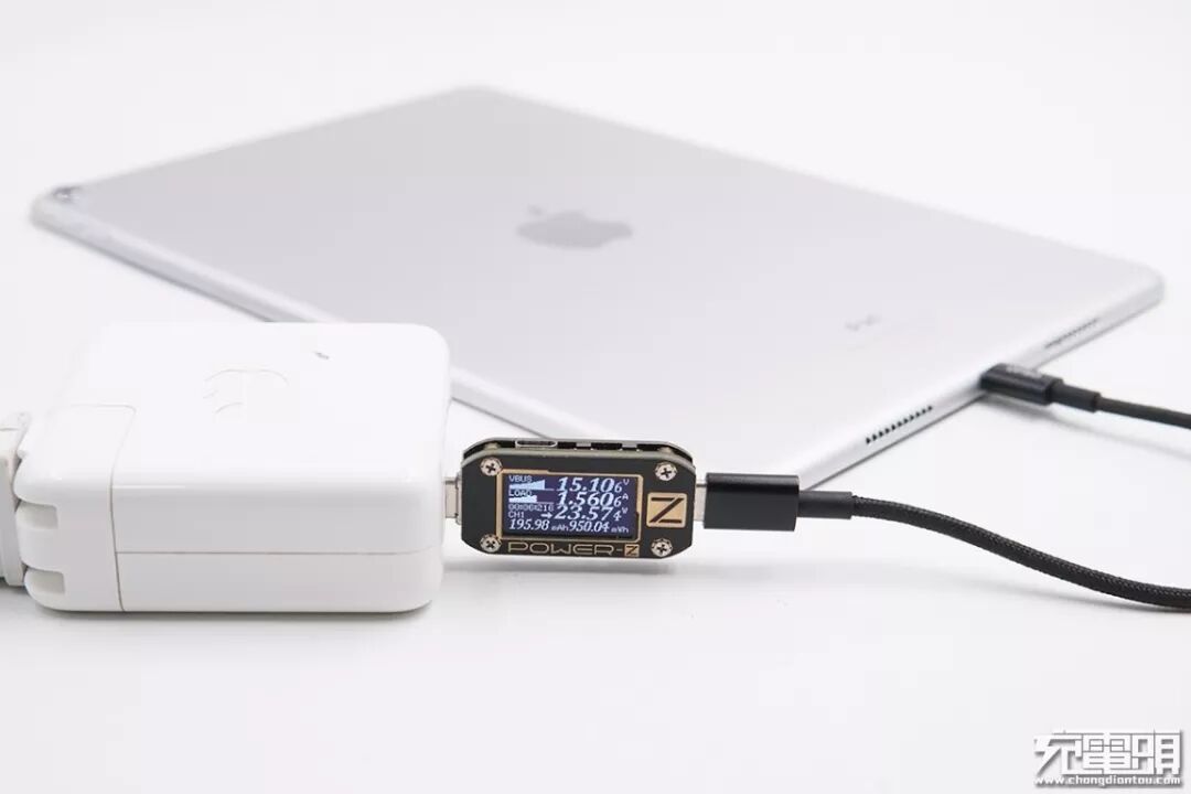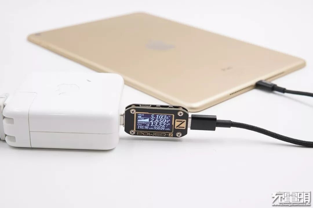 使用OPSO USB-C to Lightning数据线+苹果61W PD充电器给iPad Air2充电,电压5.1V,电流2.65A,功率13.52W,iPad Air2不支持PD快充但是支持Apple 2.4A协议,开启Apple 2.4A充电模式。