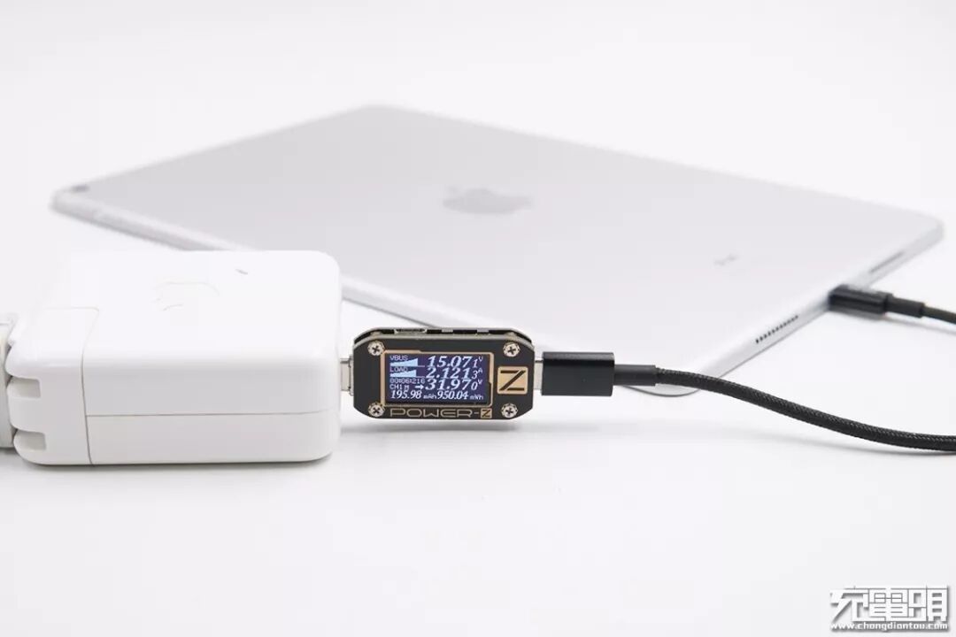 使用OPSO USB-C to Lightning数据线+苹果61W PD充电器给iPad Air3充电,电压15.07V,电流2.12A,功率31.97W,开启PD快充。