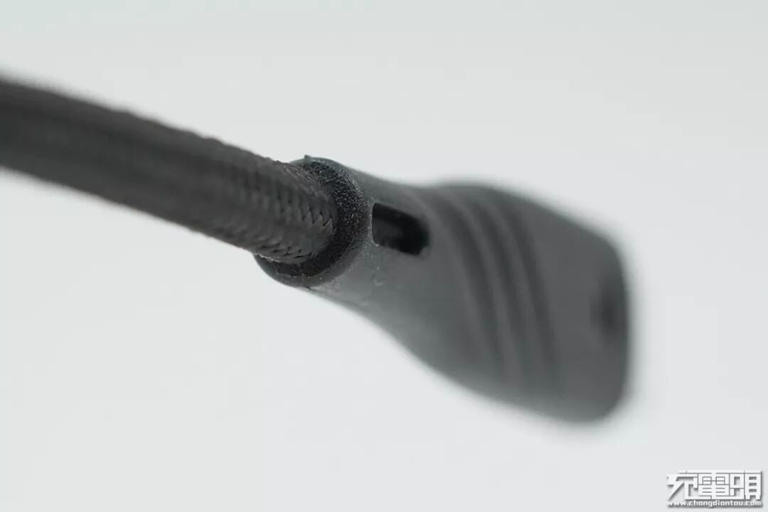 reliqo USB-C to Lightning数据线两端子头采用硬质塑料一体成型工艺,牢固可靠。端子与网尾连接处做了斜凹槽加强设计感,表面磨砂处理,做工细致。