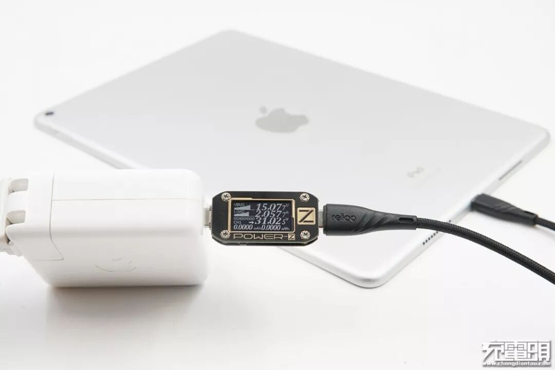 使用reliqo USB-C to Lightning编织线+苹果61W PD充电器给iPad Air3充电,电压15.07V,电流2.05A,功率31.02W,开启PD快充。