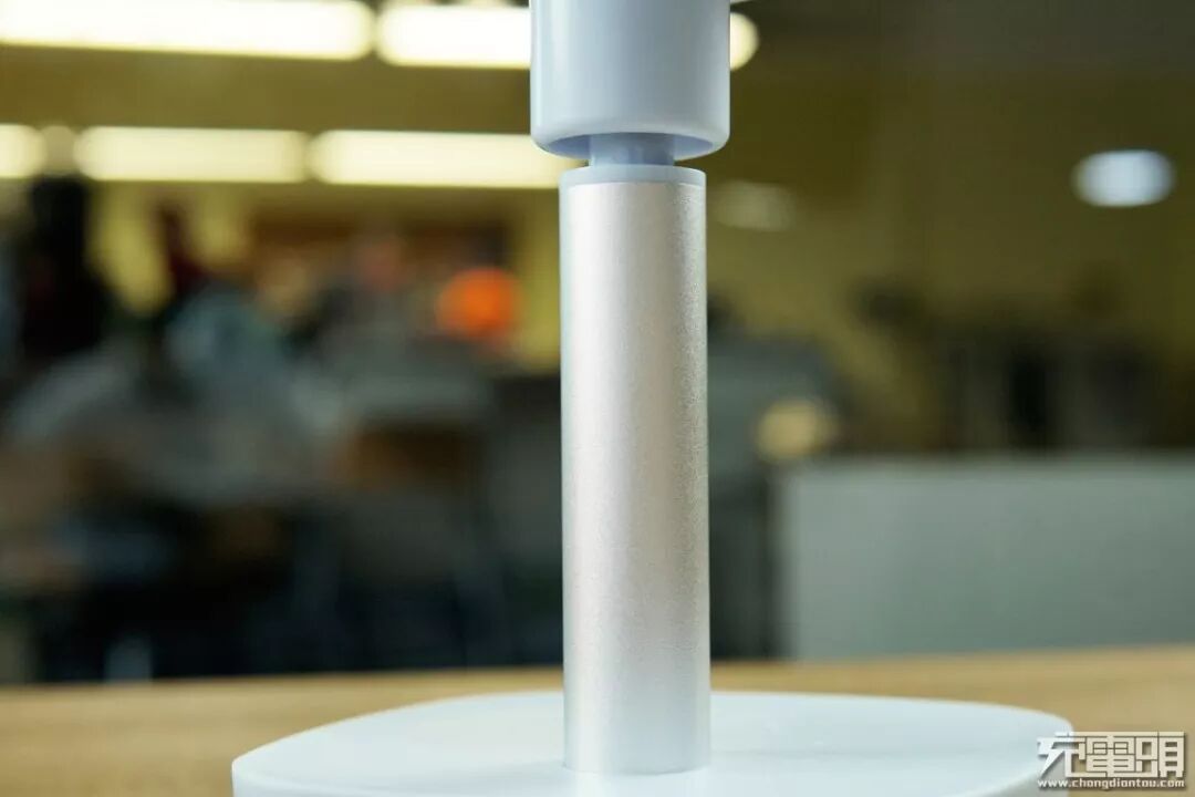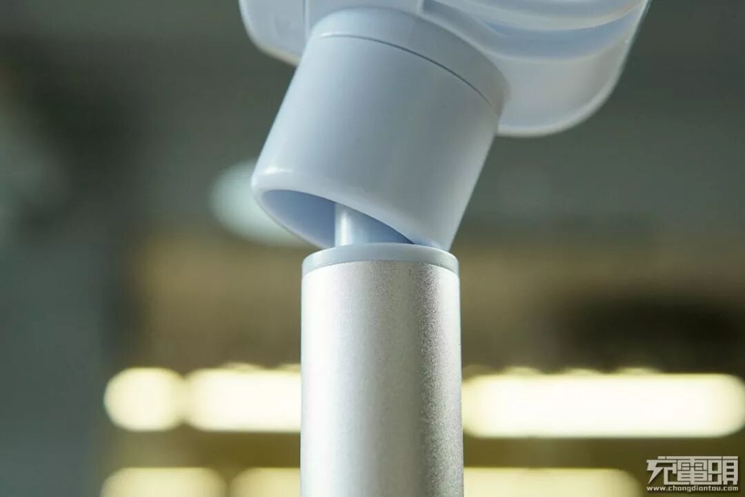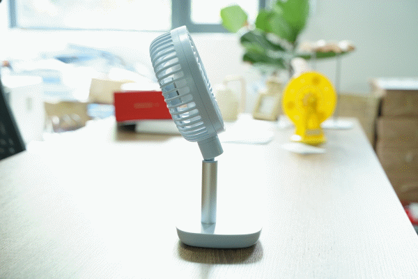 小编手上这款是冰川蓝色的小风扇,颜色非常的淡雅,看起来就很舒心。风扇比较高挑,不用刻意调节角度也能吹到人脸。风扇底座内装有锂电芯,重量集中在底部,放在桌面非常稳定。得益于内置了电池,这款风扇可以随意放置在任何位置使用,无惧电线束缚。