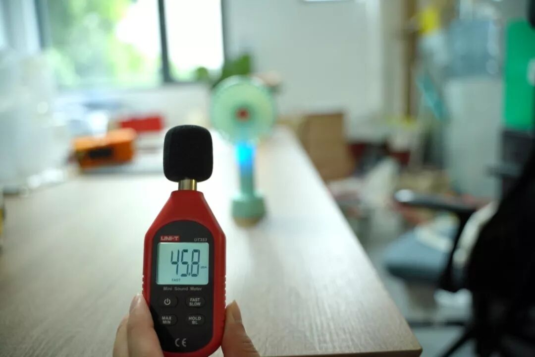 一档模式,噪音45.8dB,比羽博PORTABLE FAN 移动小风扇F1的三档噪音还大。
