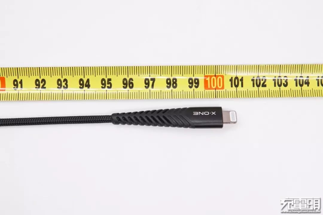 实测X·ONE USB-C to Lightning数据线长101cm。