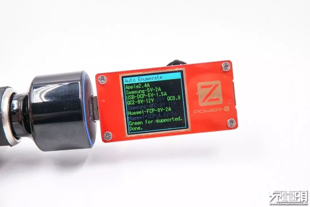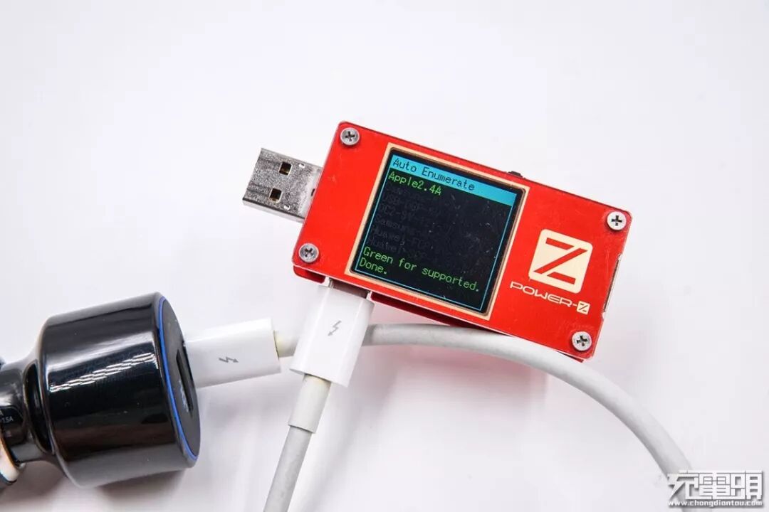 同样使用Power-Z KT001测试仪对车充的USB-C口进行协议检测,测得支持Apple2.4A充电协议。