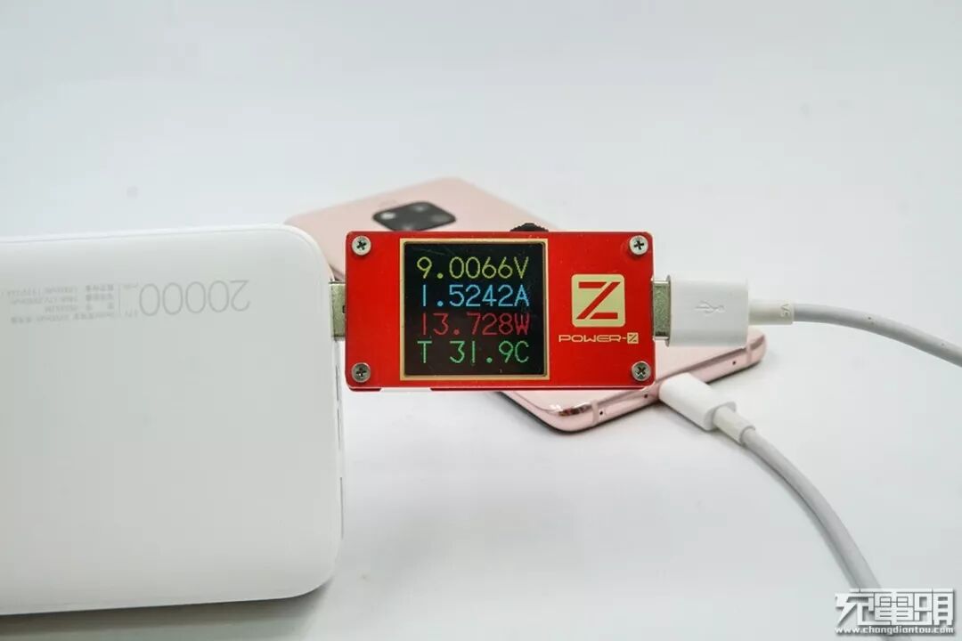 此外、Redmi充电宝快充版支持双口同时充放,双口会锁定在5V模式。使用移动电源同时充为华为Mate20 Pro和小米9充电,总功率达到16.58W。