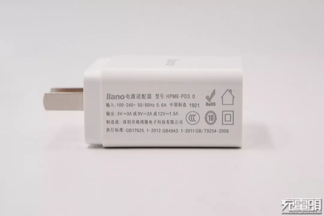 充电器机身上的丝印: