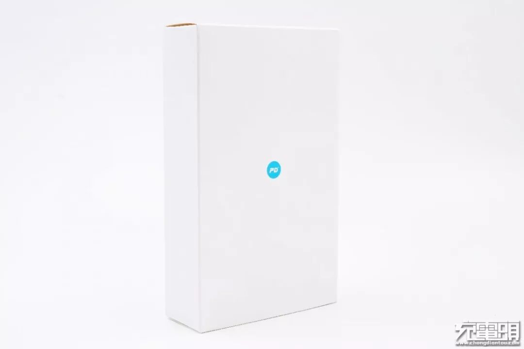 JDB移动电源包装盒比较简约,正面印制PD字样再无其他。