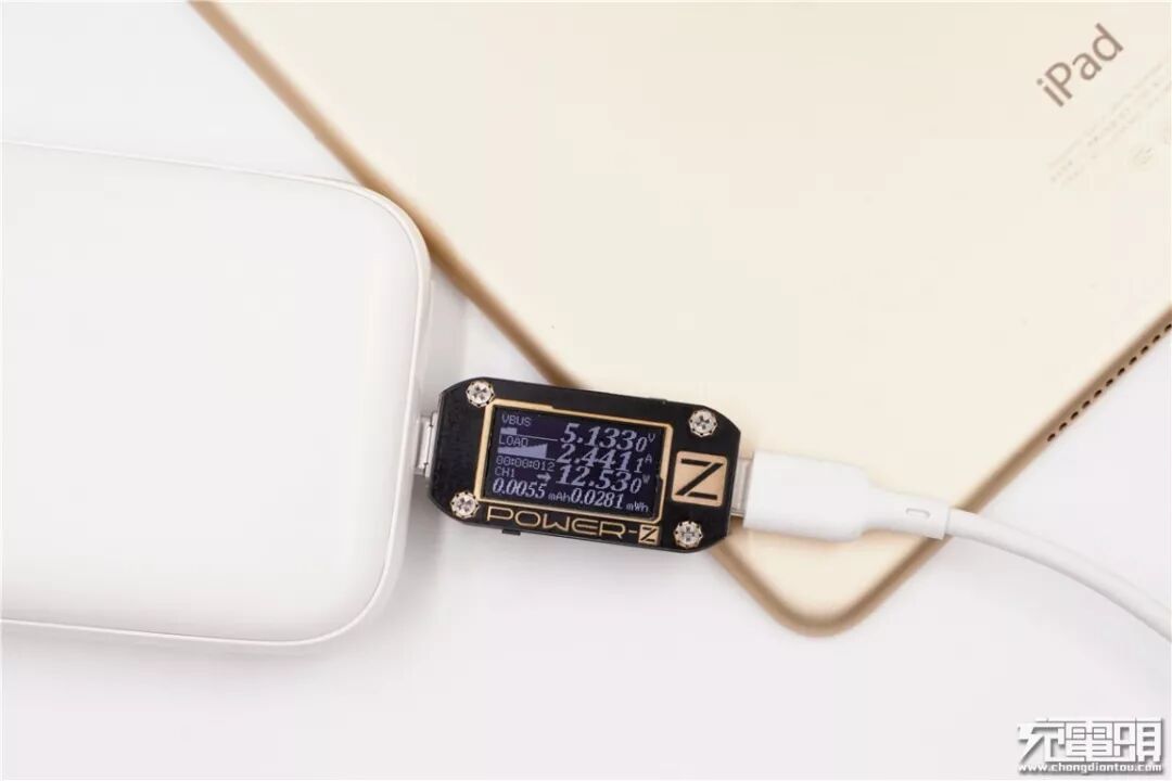 充iPad Air2,电压5.13V,电流2.44A,功率12.53W,开启Apple 2.4A充电模式。