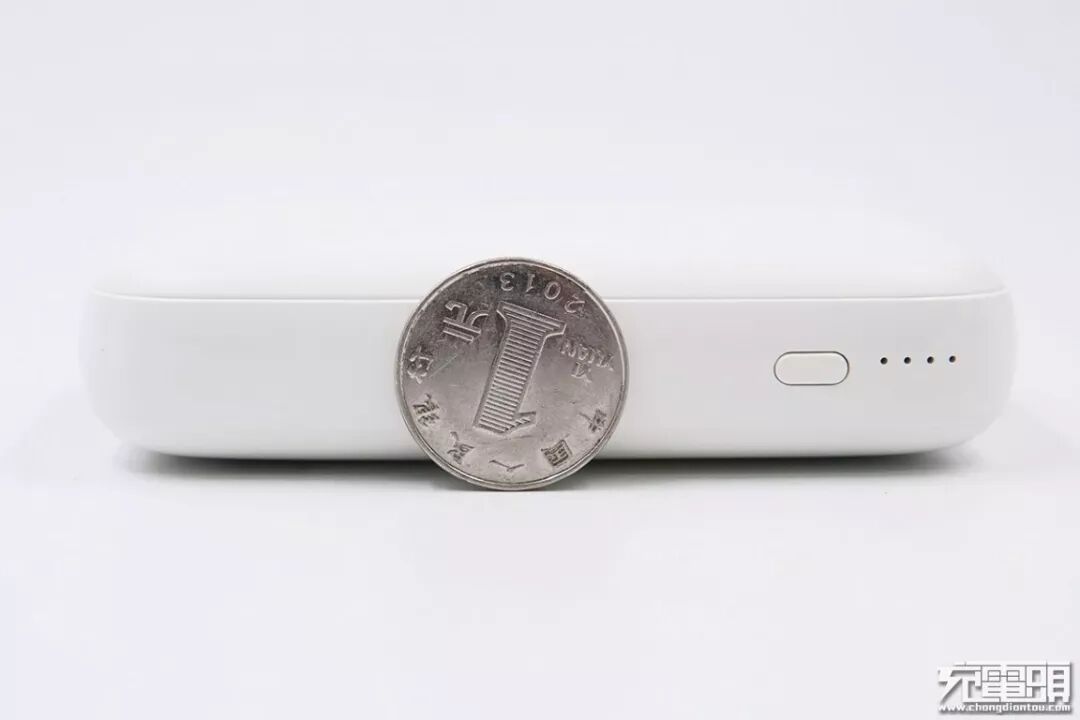 移动电源厚度与一元硬币直径差不多。
