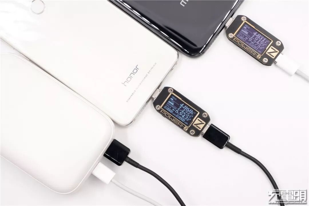 JDB移动电源支持双口同时输出,同时给荣耀8、魅族16th Plus充电,功率分别为6.94W、9.27W。