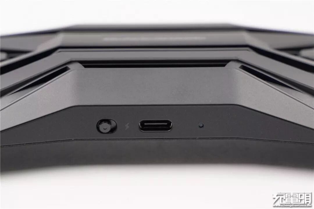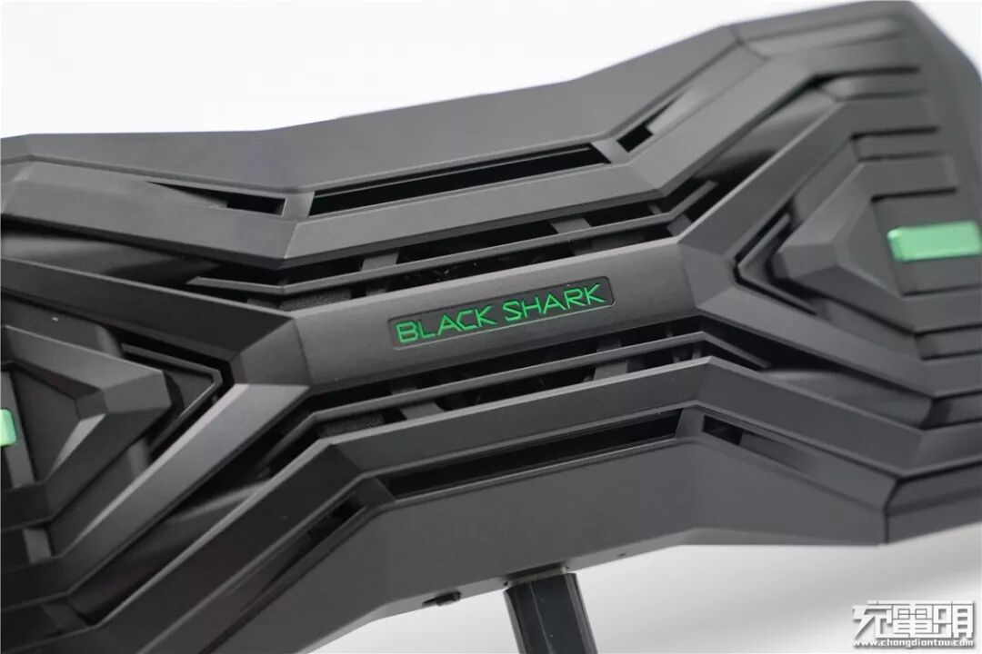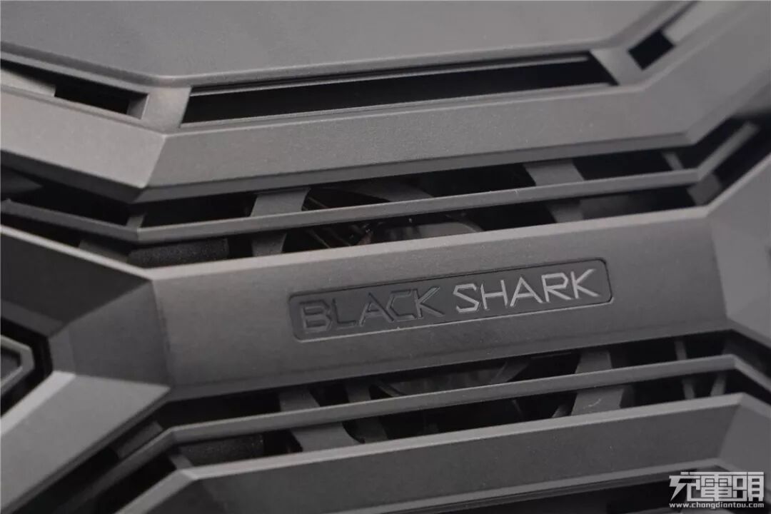 黑鲨极冷散热背夹内置700mAh电池,拥有内置电池可以无需外接供电便可使用。散热风扇与与极冷晶片藏于黑鲨英文标识内部下,从扇叶样式可以推断风扇位置是向外排热风,两侧格栅是用于冷空气进入的进气孔。