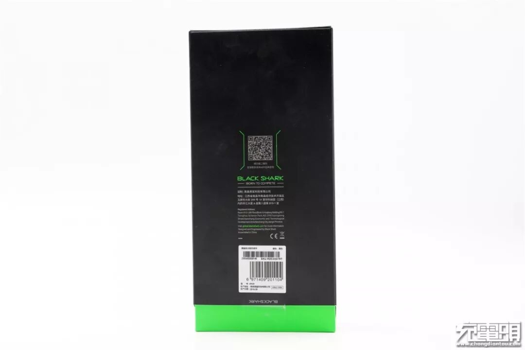 黑鲨极冷散热背夹需要下载App连接后才能使用,背面中心有App下载二维码。下方贴有产品条形码以及型号信息:BR08。