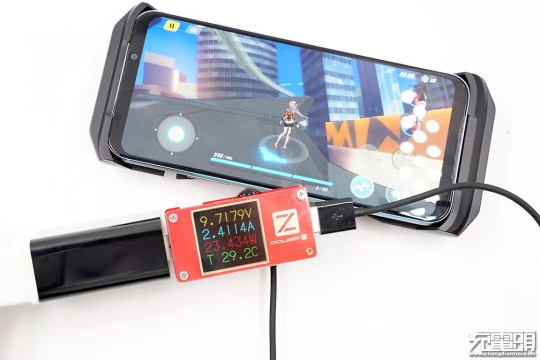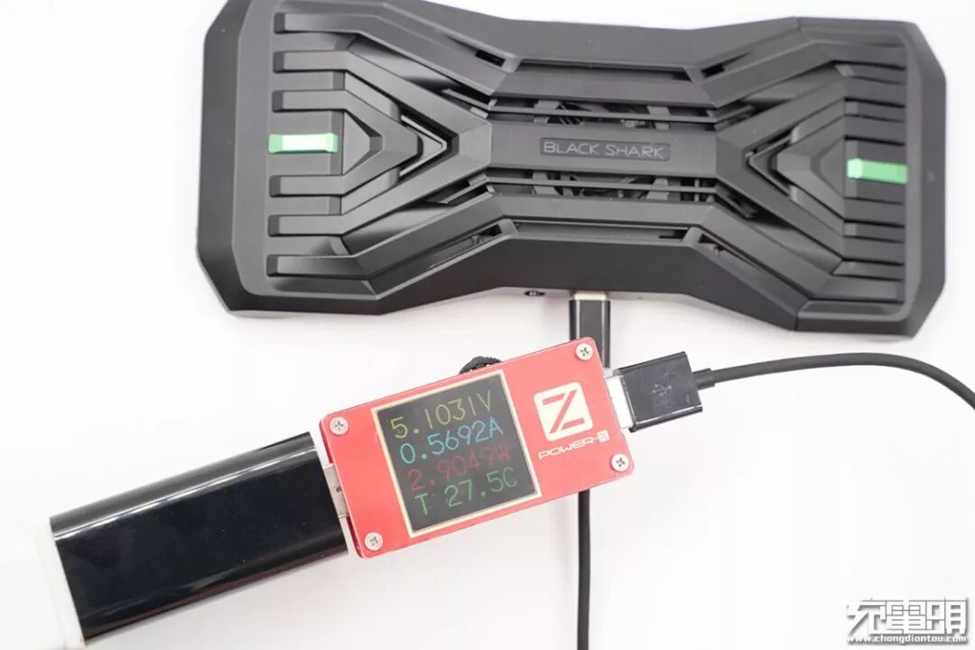 使用黑鲨游戏手机2Pro充电器为黑鲨极冷散热背夹充电,功率3W左右。