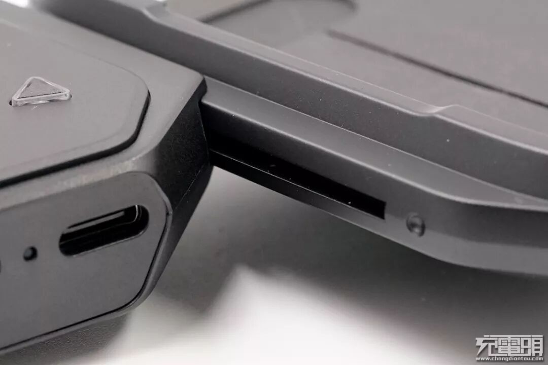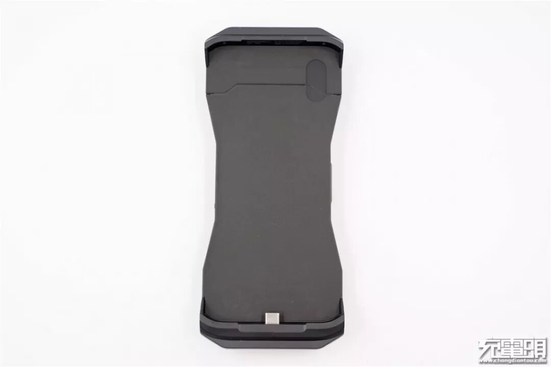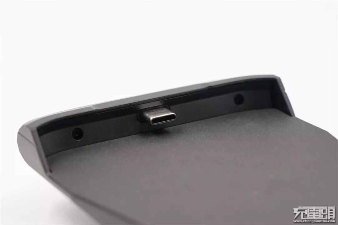 内衬底部有一枚USB-C公头,用于双向连接手机,当背夹内置电池没电时,背夹可通过这枚USB-C口向手机索取电力维持运行;当有外部电源插上背夹时,该接口可以给手机进行充电。