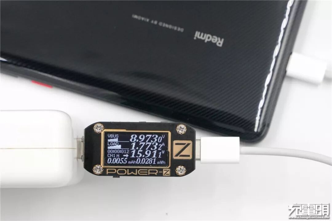 使用苹果30W PD充电器充Redmi K20 Pro,电压8.97V,电流1.77A,功率15.91W,开启PD快充。
