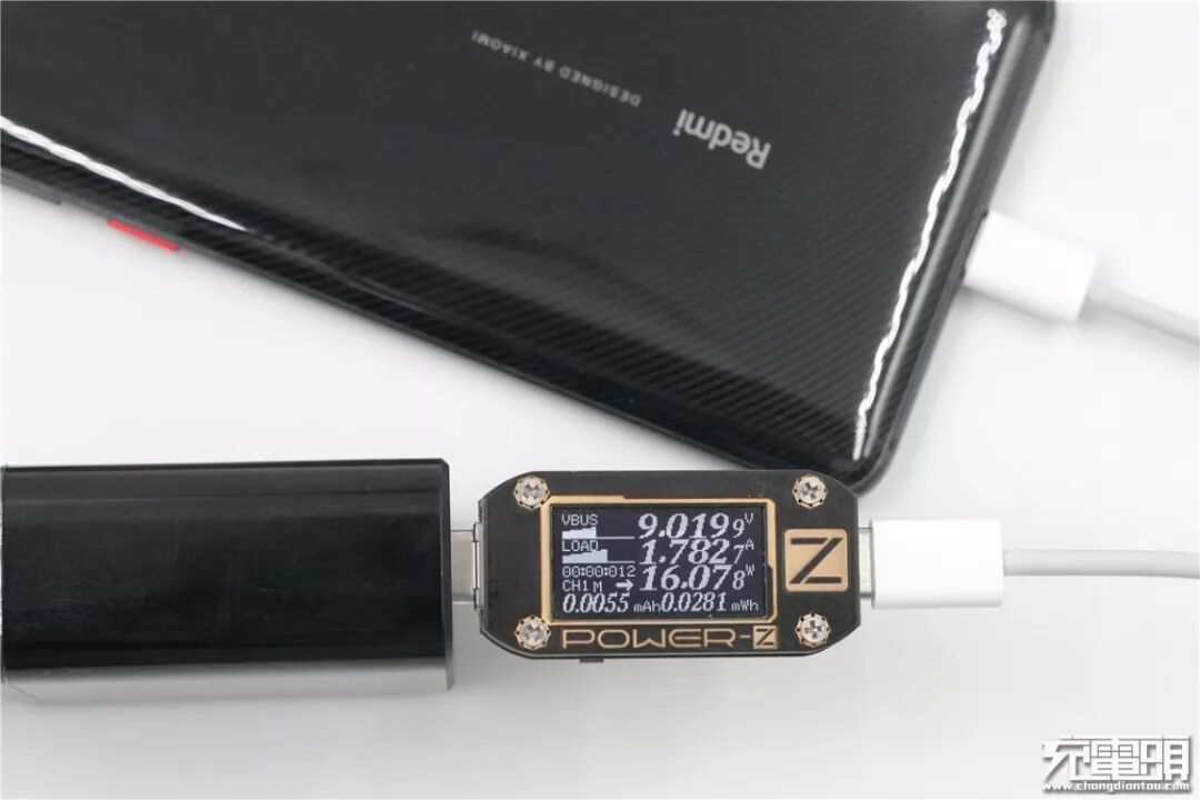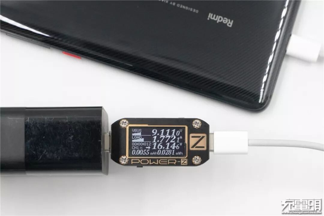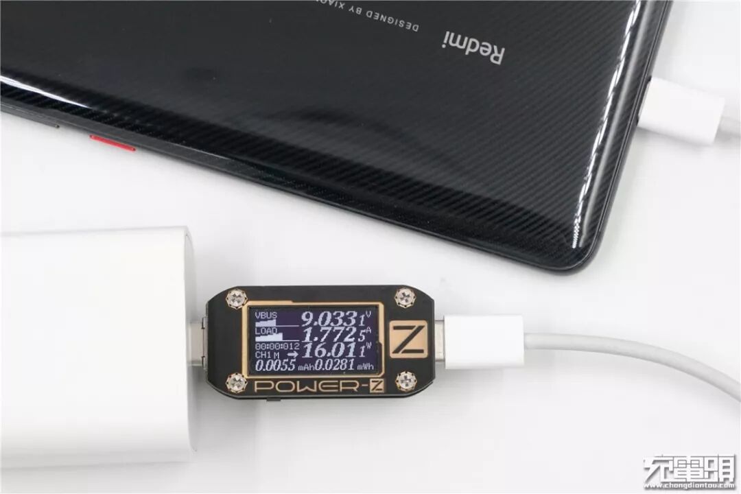 使用小米18W QC充电器充Redmi K20 Pro,电压9.01V,电流1.77A,功率16W,开启QC快充。