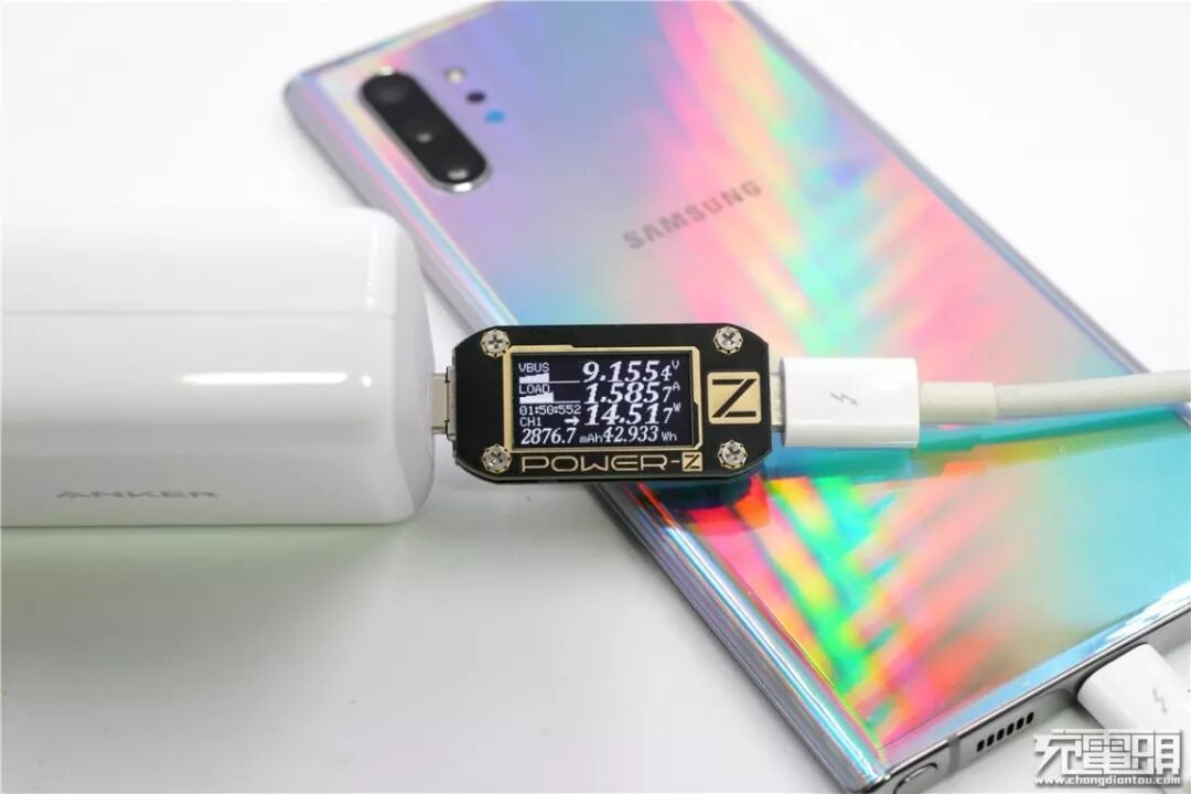 使用ANKER 2A2C 100W PD充电器充Note10+,电压9.02V,电流1.62A,功率14.64W,开启PD快充。![]()
