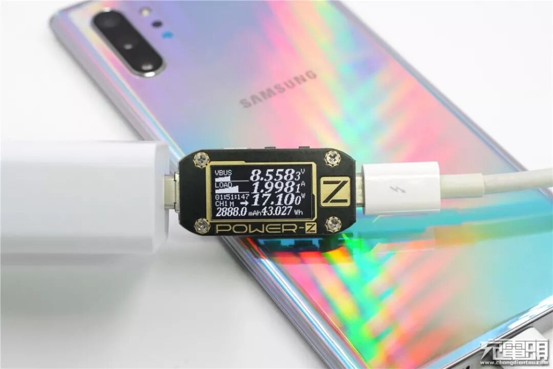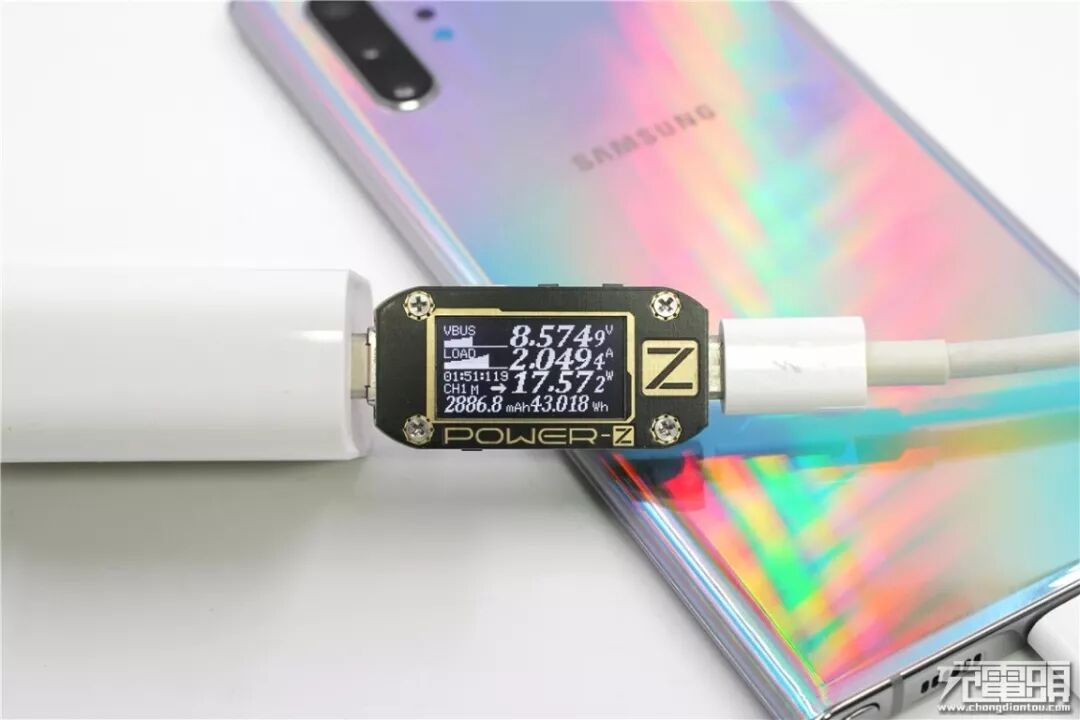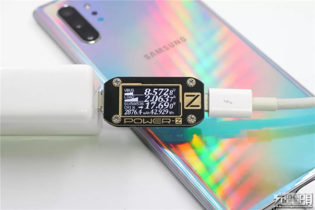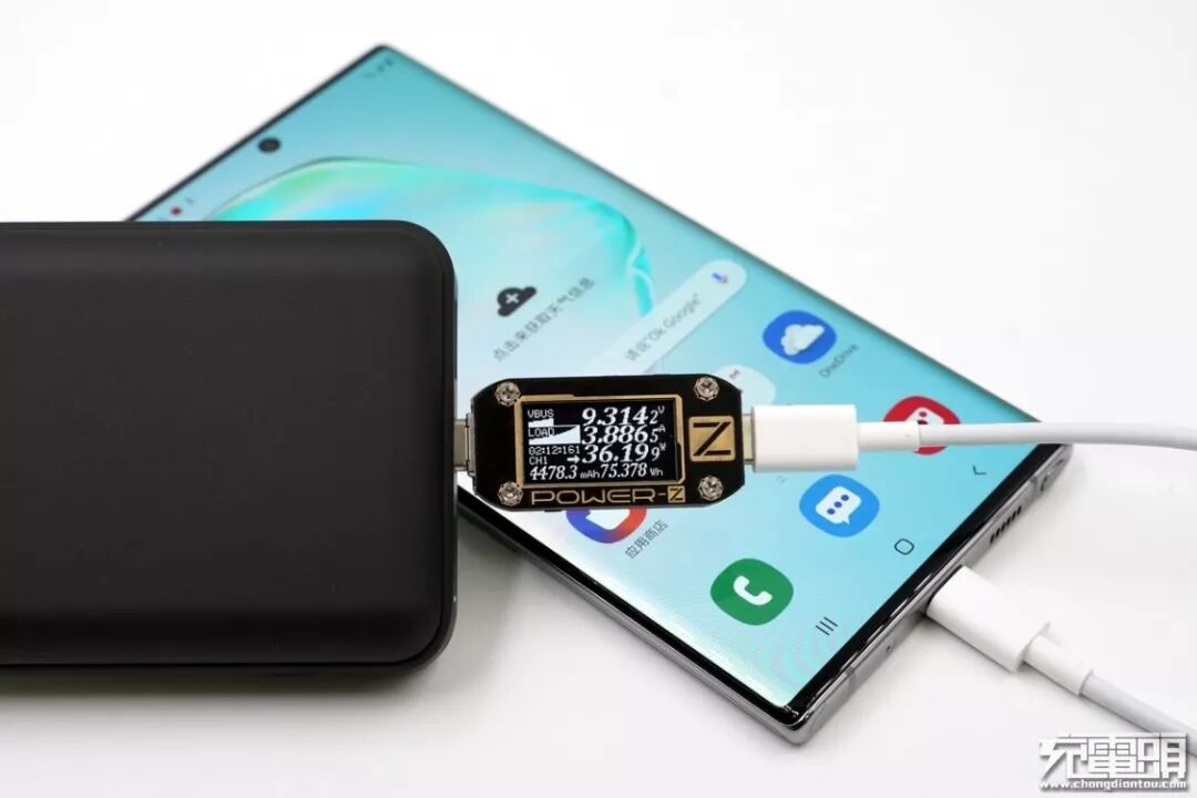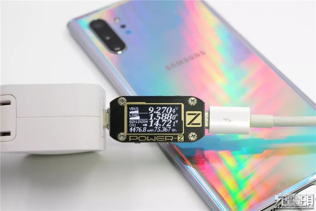 使用紫米 18W PD充电器充Note10+,电压5.06V,电流2.06A,功率10.47W。