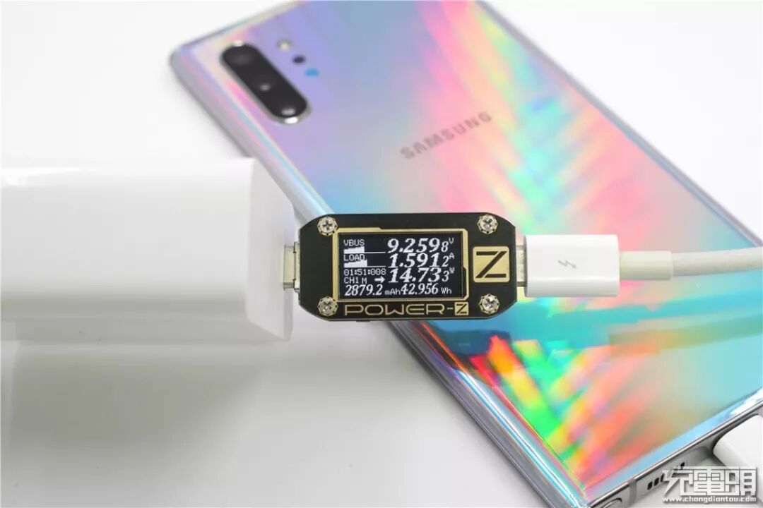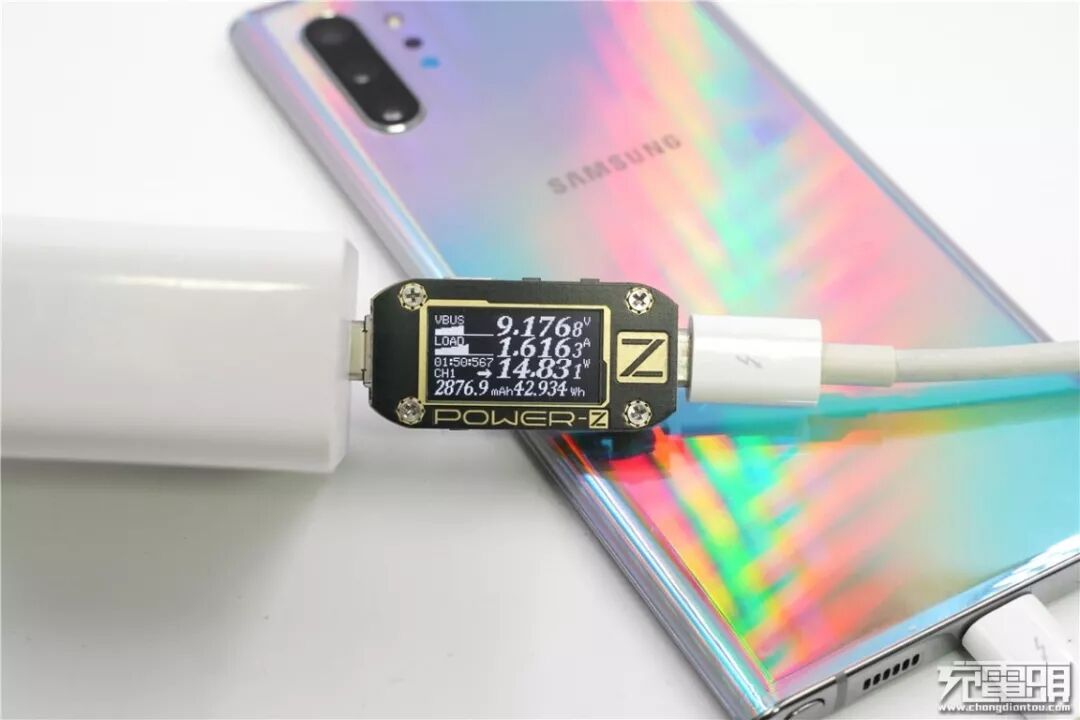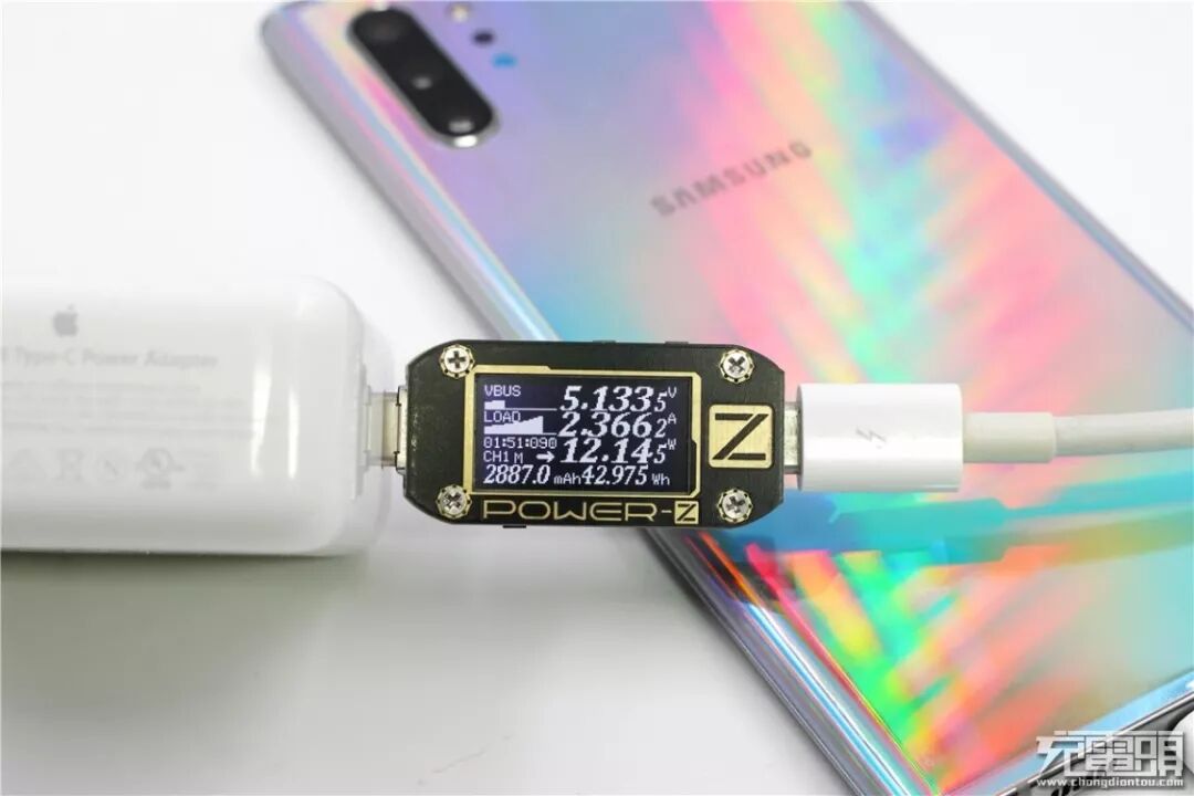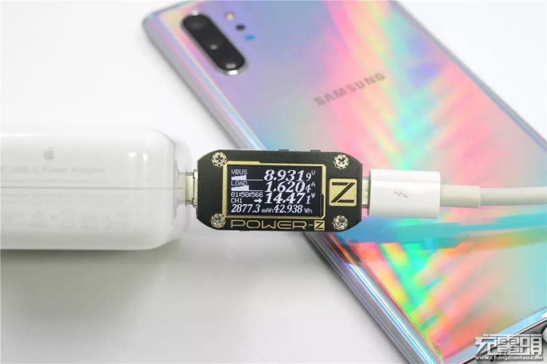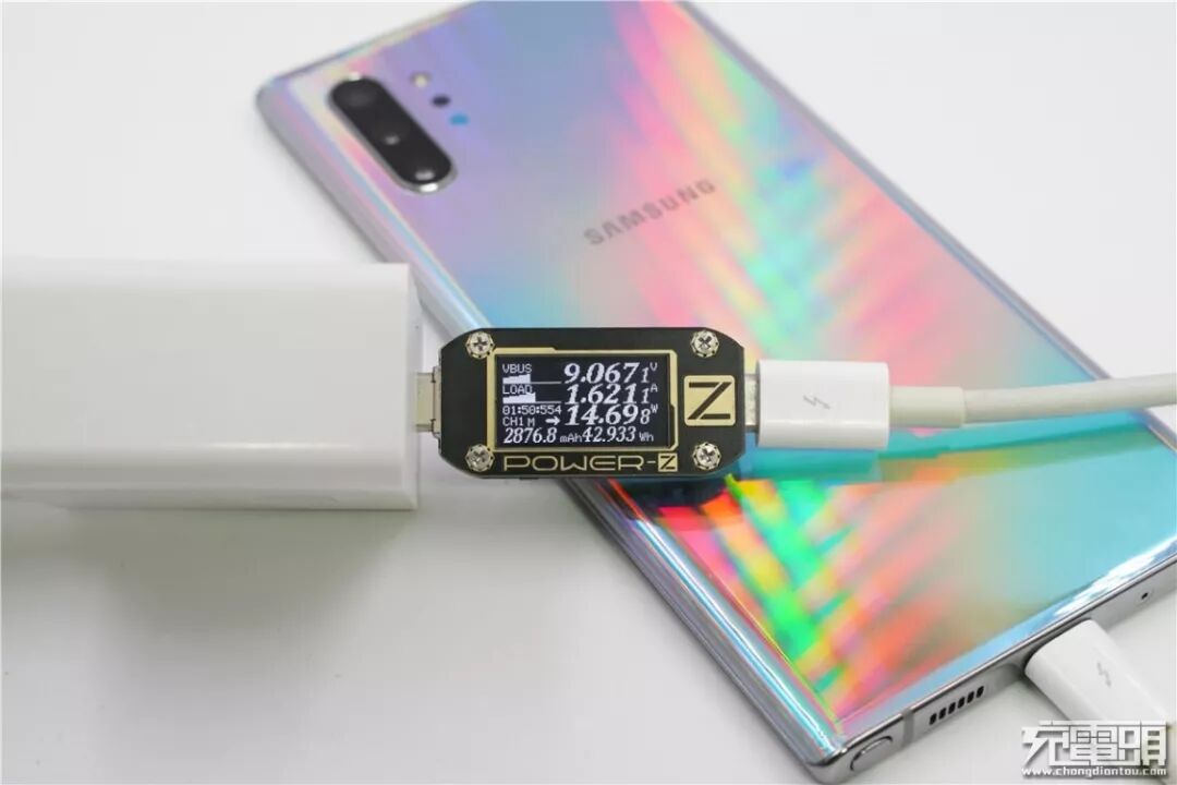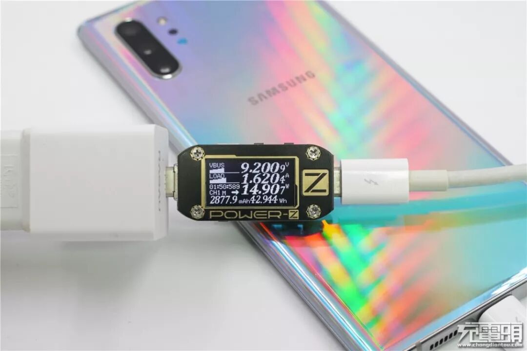使用紫米 18W PD充电器充Note10+,电压5.06V,电流2.06A,功率10.47W。