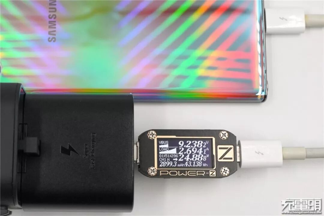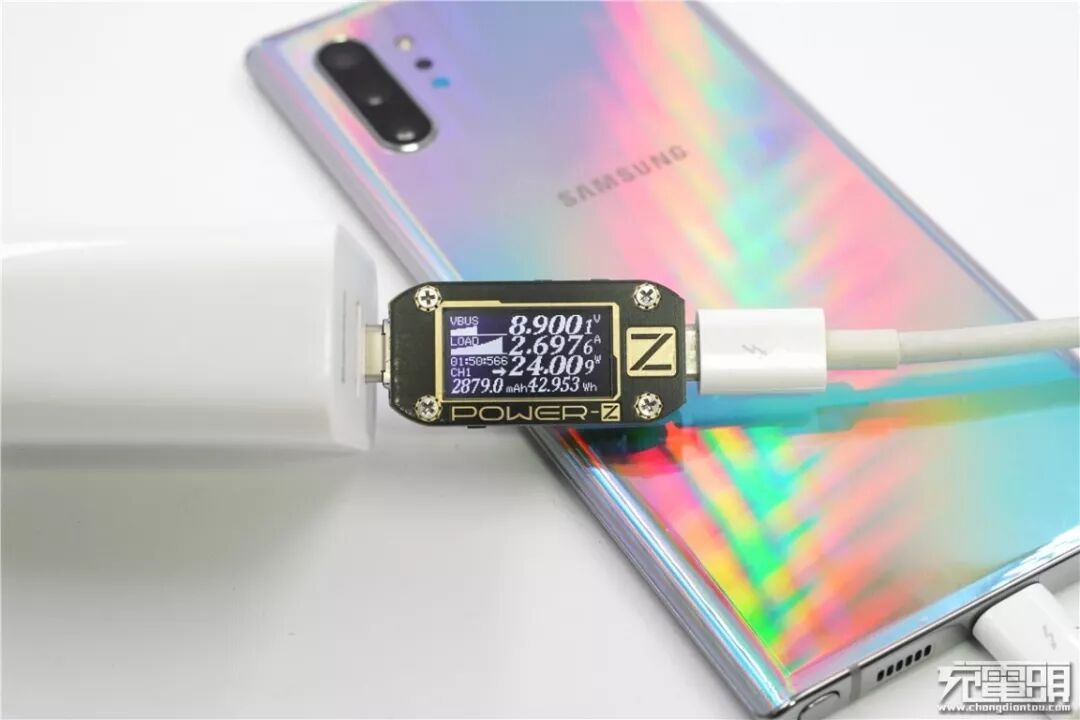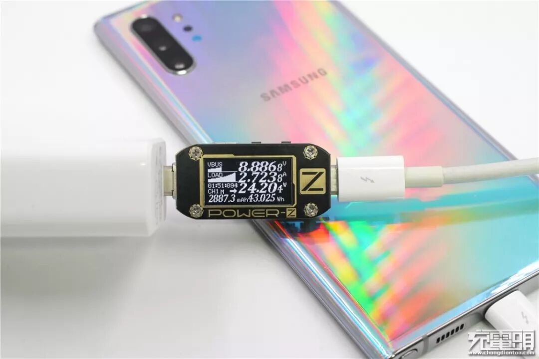 使用三星Note10+原装充电器充Note10+,电压9.23V,电流2.69A,功率24.88W,开启PPS快充。