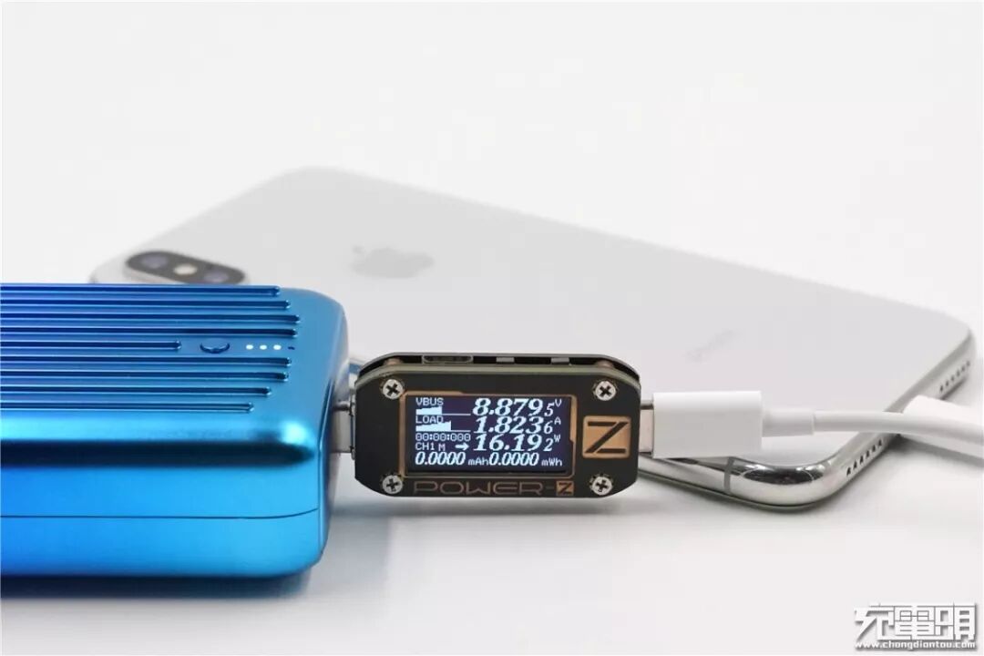 充iPhone X,电压8.87V,电流1.82A,功率16.19W,开启PD快充。