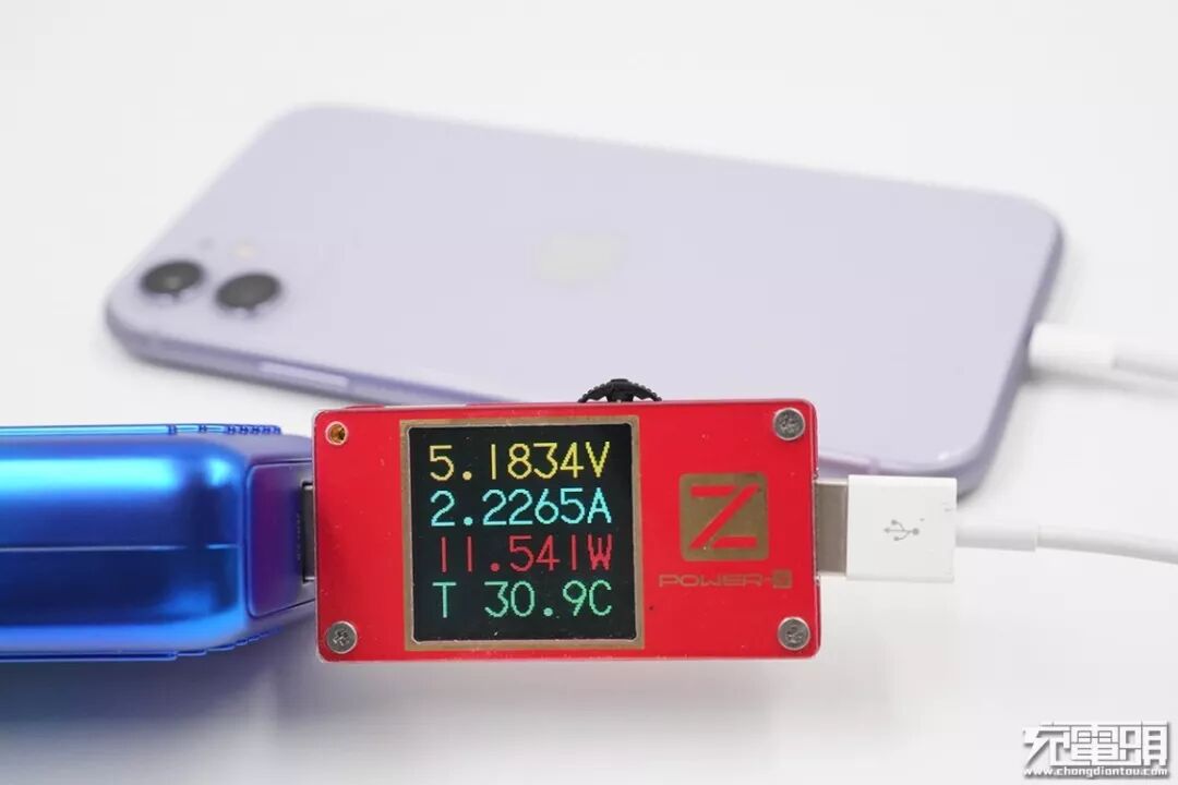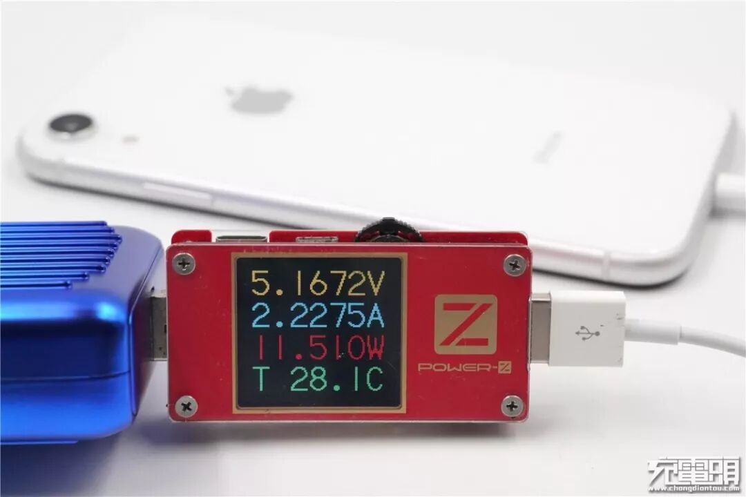 充iPhone XR,电压5.16V,电流2.22A,功率11.51W,开启Apple 2.4A充电模式。