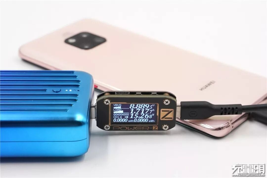 充华为Mate 20 Pro,电压8.88V,电流1.71A,功率15.26W,开启PD快充。