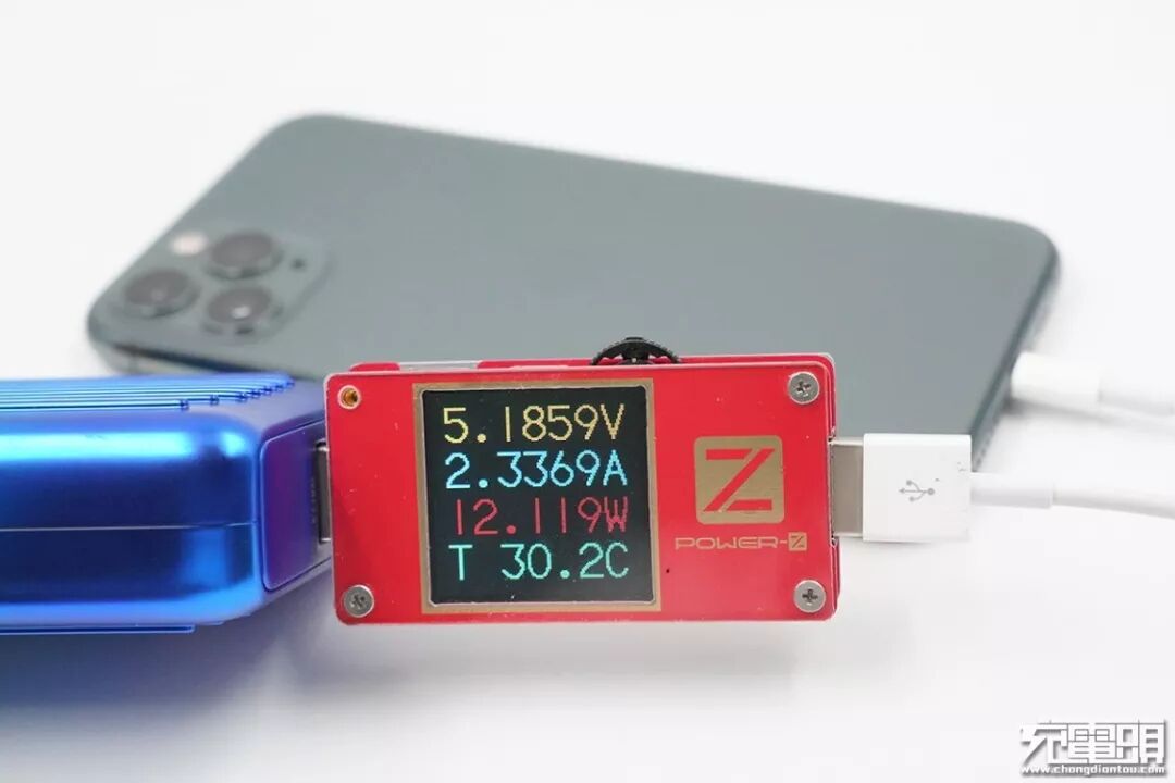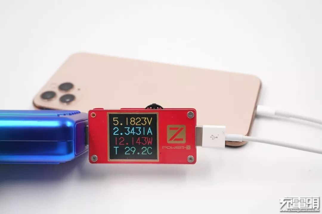 充iPhone 11 Pro,电压5.18V,电流2.33A,功率12.11W,开启Apple 2.4A充电模式。