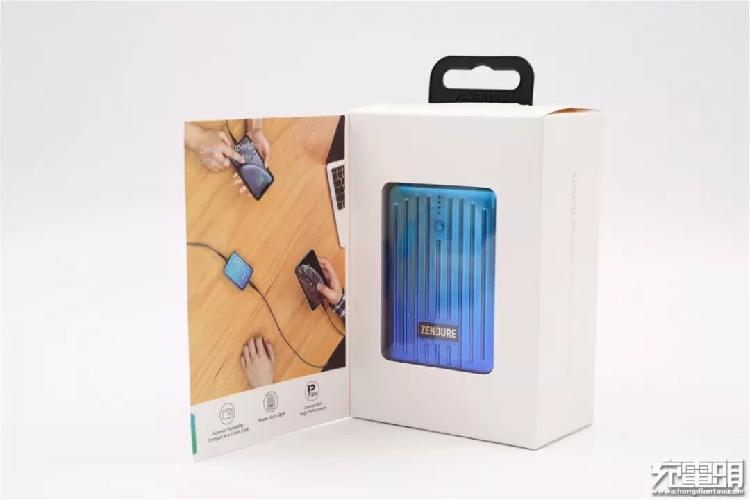 SuperMini移动电源包装盒是一贯的ZENDURE产品风格,白色硬纸纸盒包装,设有挂钩,翻页式设计,方便实体店上架展示。
