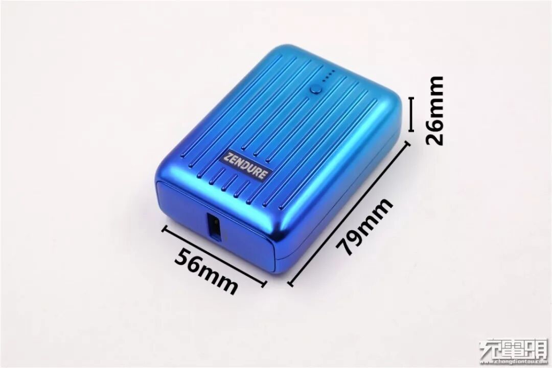 外观方面,SuperMini移动电源表面大胆的采用了电镀青蓝渐变色,营造出逼真的金属质感,时尚新颖引领潮流;“旅行箱”的外形设计也的以传承,辨识度极高,让人一眼就能看出是ZENDURE的产品。既有新元素的加入,又有旧优点的保留, SuperMini的外观可以说是ZENDURE的集大成之作。