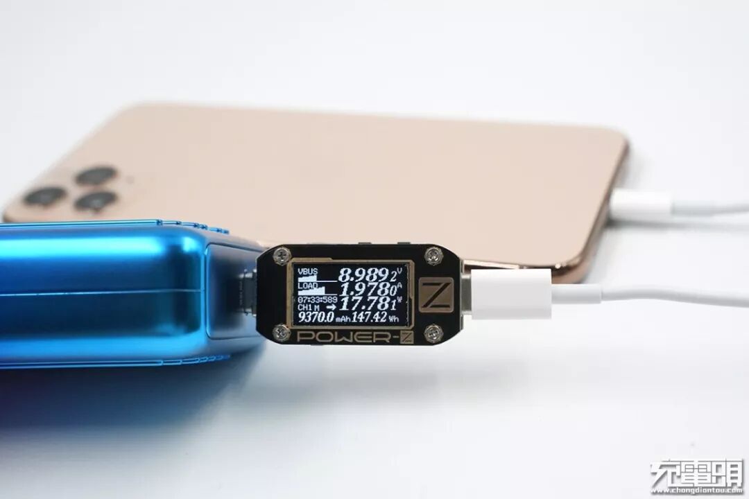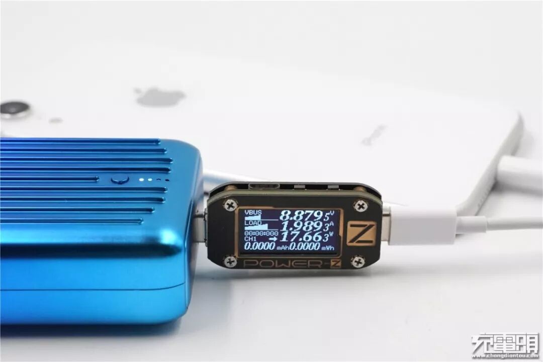 充iPhone XR,电压8.87V,电流1.98A,功率17.66W,开启PD快充。