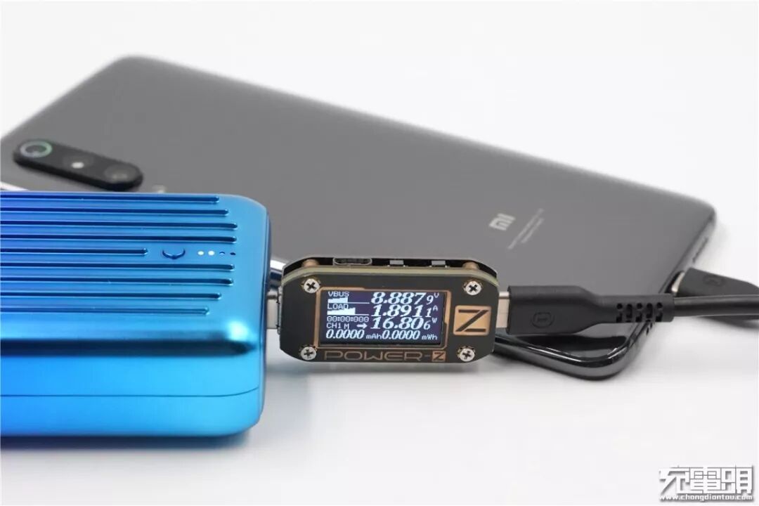 充小米9,电压8.88V,电流1.89A,功率16.8W,开启PD快充。