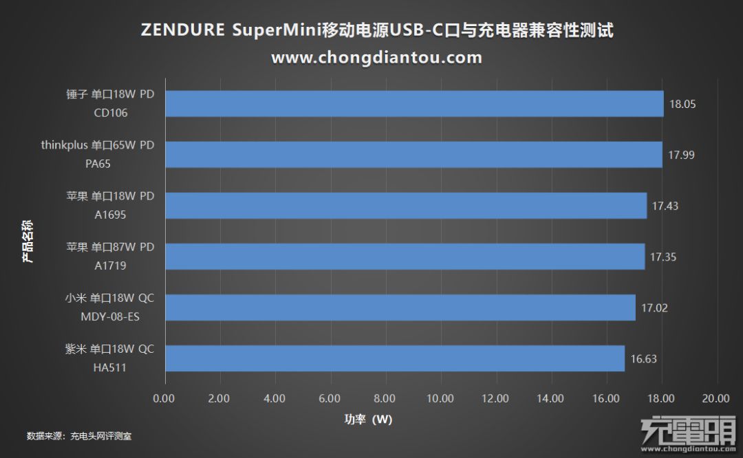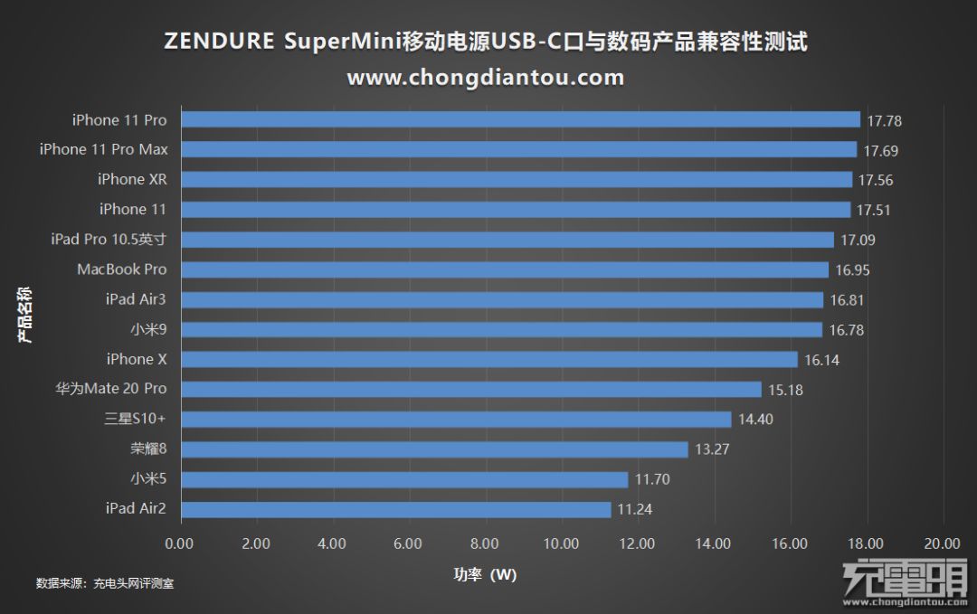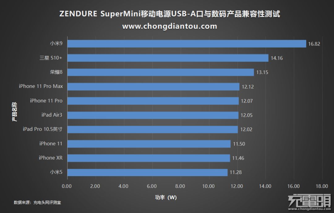 ZENDURE SuperMini移动电源支持PD、QC快充输入,最大功率可以达到18W+,表现不错符合标称数值。