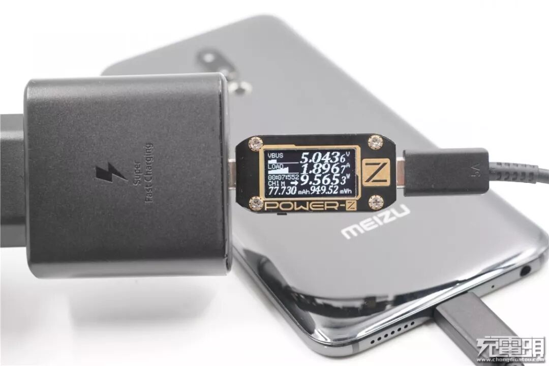 充魅族16th Plus,电压5.04V,电流1.89A,功率9.56W,确认不支持PE快充。