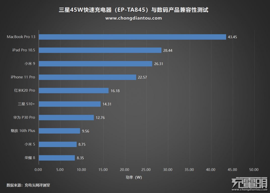 本次测试的数码产品充电功率制成柱状图,方便大家阅读。