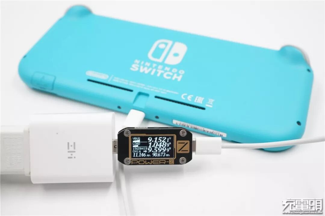 使用ZMI紫米 单口18W PD HA711充电器为Switch Lite充电,电压9.15V,电流1.04A,功率9.59W,开启PD快充。