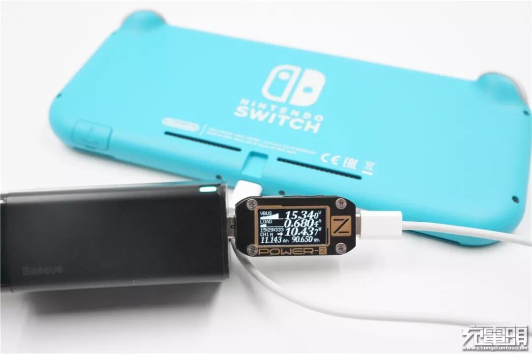 用倍思 1A2C 65W PD BS-C915充电器为Switch Lite充电,电压15.34V,电流0.68A,功率10.43W,开启PD快充。