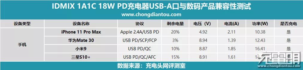 充电器USB-A输出口兼容性表现也十分不错。