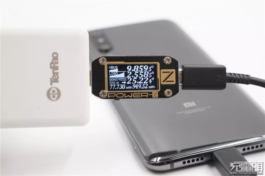 充小米9,电压9.85V,电流2.55A,功率25.22W,顺利握手PPS快充。