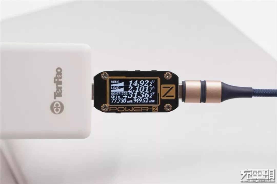 充iPad Air 3,电压14.92V,电流2.10A,功率31.36W,顺利握手PD快充。