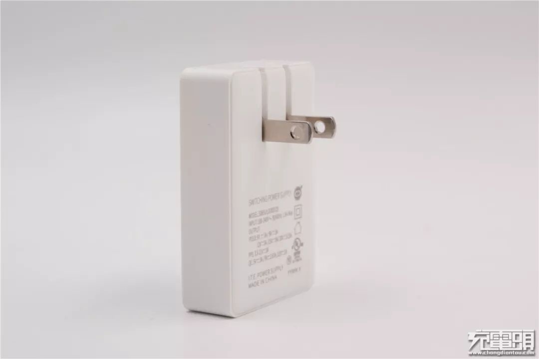 充电器采用塑料材质外壳,表面磨砂处理,手感细腻,不易沾惹指纹。