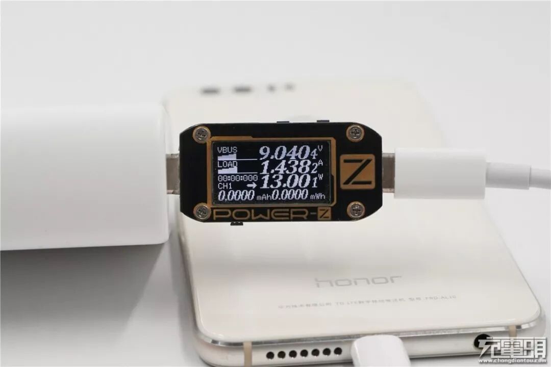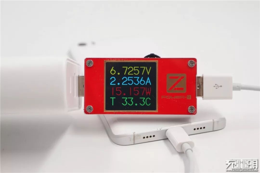 充华为Mate20 Pro,电压为9.02V,电流为1.73A,功率为15.67W,顺利握手USB PD快充。