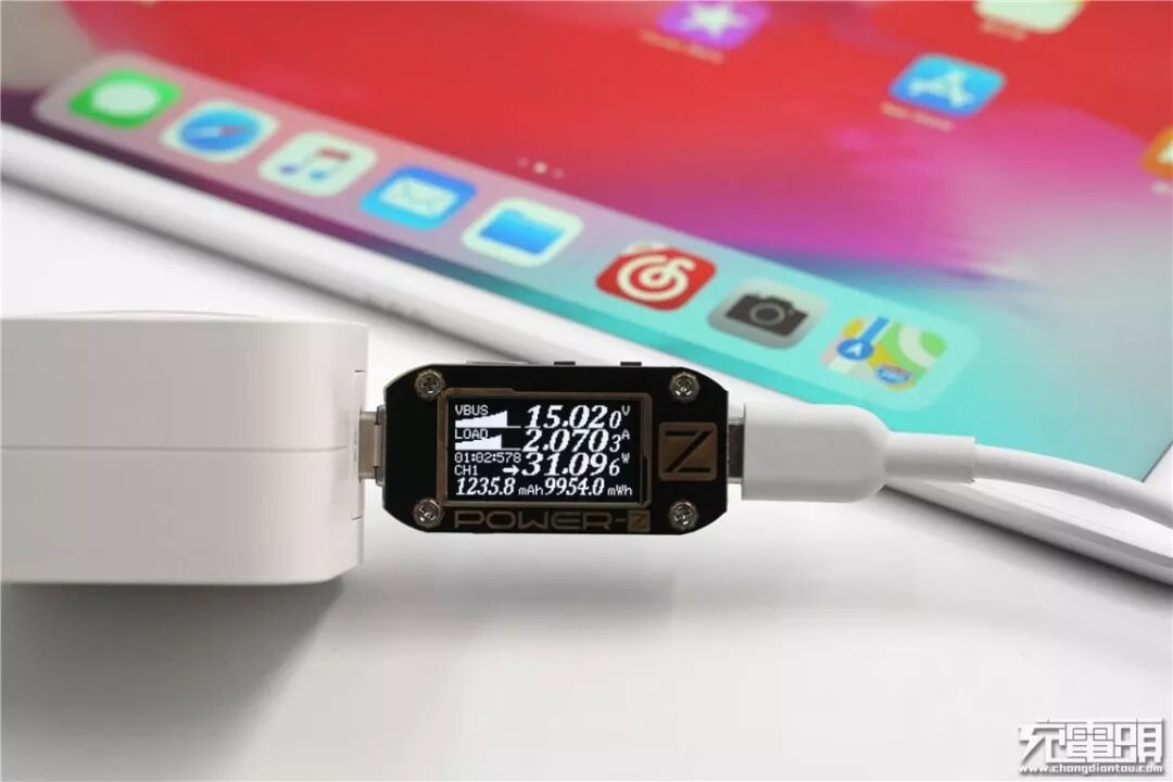 充iPad Air3,电压15.02V,电流2.07A,功率31.09W,开启PD快充。