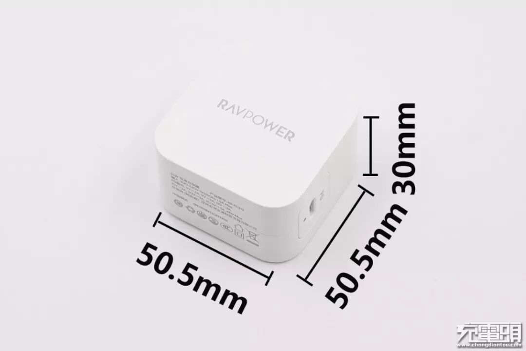 RAVPower 61W GaN 氮化镓充电器三围大小:50.5mm*50.5mm*30mm。