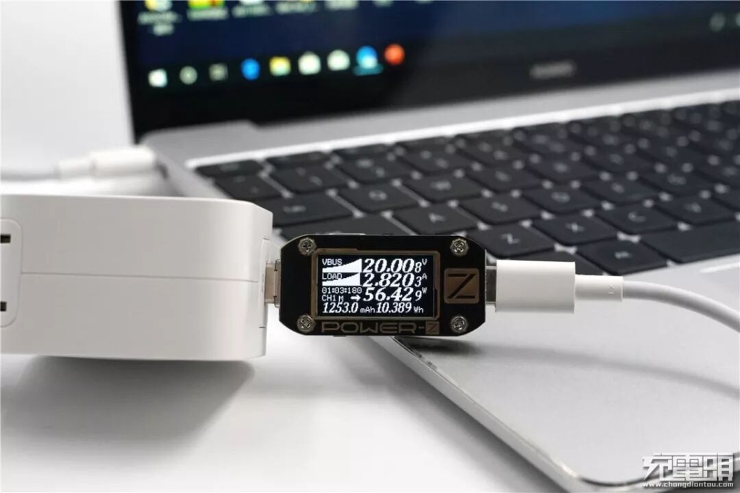 充华为MateBook 13,电压20V,电流2.82A,功率56.42W,开启PD快充。